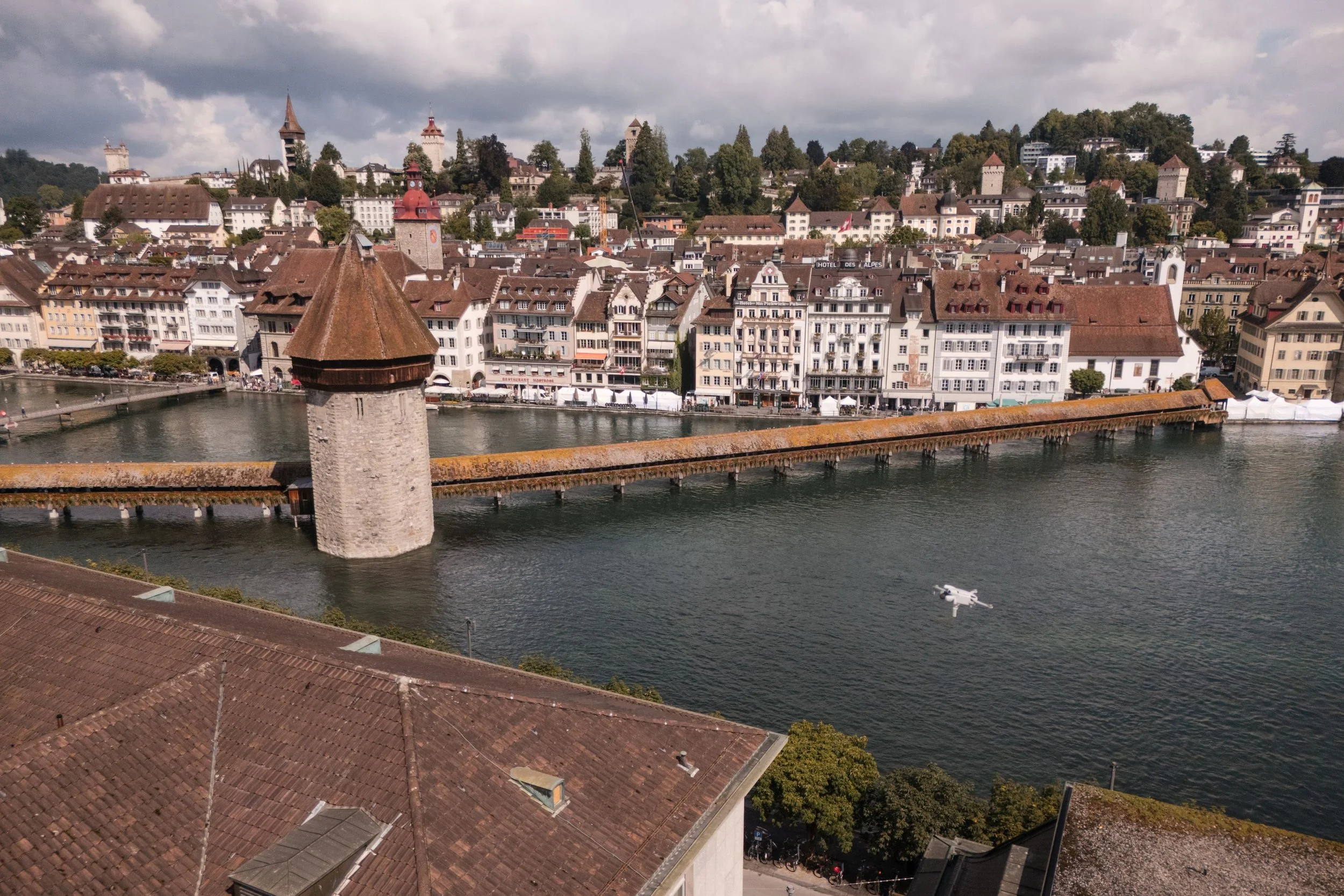 In Luzern führt der Rundgang schliesslich nach draussen. Das Dach ist nicht begehbar, also startet Gfeller die Drohne. Sie zieht ruhig an der Dachkante entlang, blickt in Dachrinnen, prüft Abläufe und Dachfenster. «Mit der Drohne können wir nahe heranfliegen und mit Fotos sauber dokumentieren. Ohne Leiter, ohne Hebebühne, ohne Risiko», sagt er. Die Drohne ist also nicht etwa ein Spielzeug, sondern ein pragmatischer Ersatz für riskante oder unverhältnismässige Einsätze. Und eine effiziente Möglichkeit, Details sichtbar zu machen, die vom Boden aus schlicht nicht erkennbar sind. Der ehemalige Bauleiter bleibt dabei pragmatisch: Wenn ein Flachdach sicher begehbar ist, geht er lieber selber hoch.